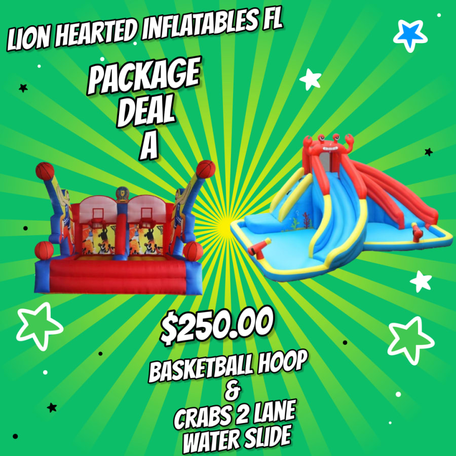 Don't wait any longer to elevate your outdoor gatherings with our inflatable basketball hoop and 2-lane crab water slide combo. Simply book our services for delivery in [Delivery Areas] and get ready for a day filled with active fun and laughter. Hurry and secure your package deal now!